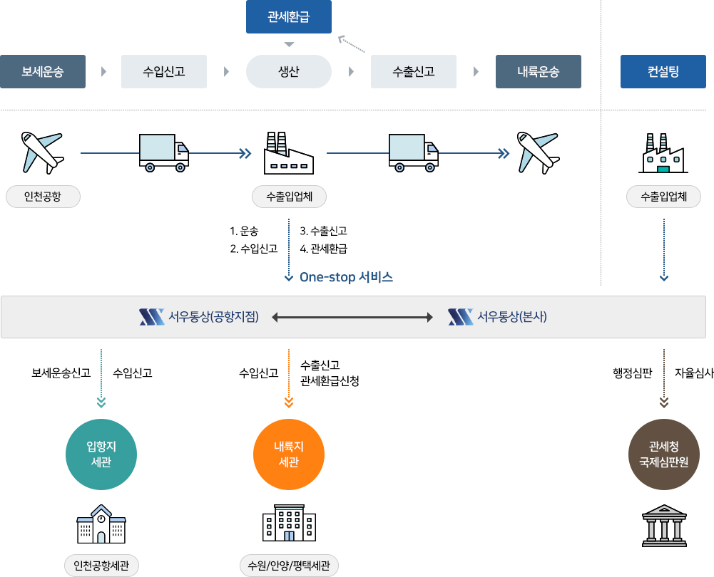 ⦁ 입항부터 운송, 통관 및 관세환급 까지 One-Stop 서비스 제공으로 화주의 관리비 및 물류비 절감